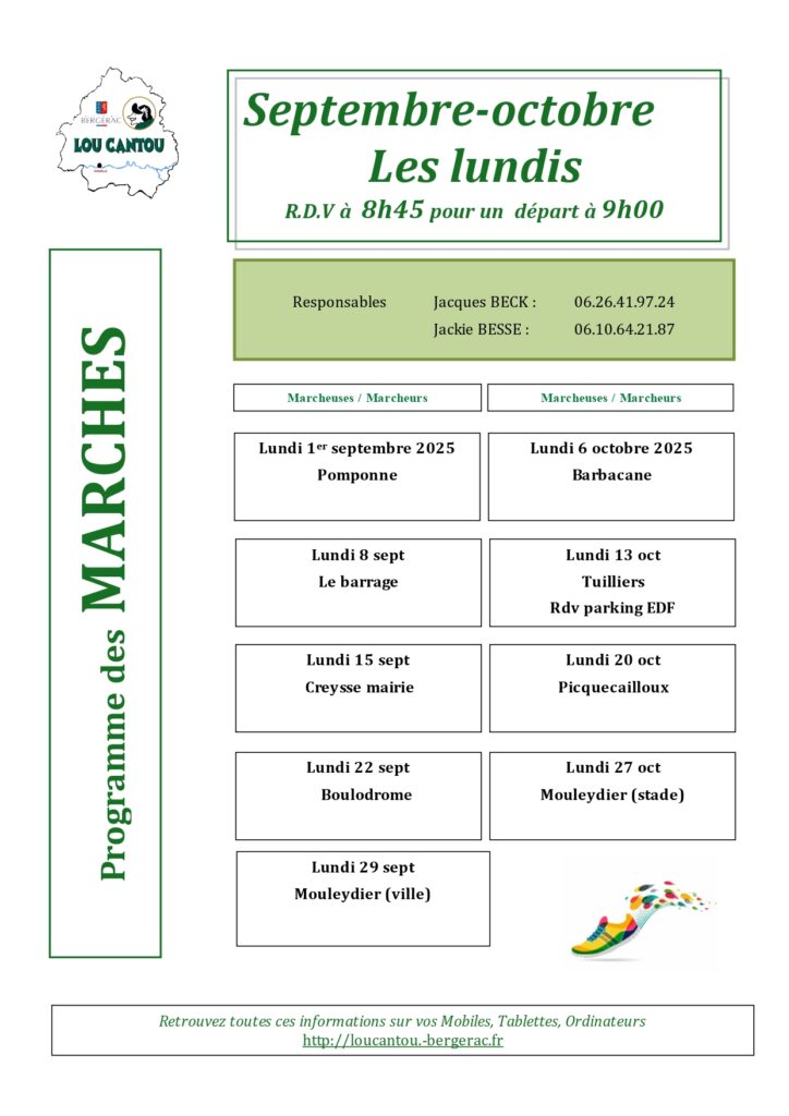 Toutes les marches présentées ci-dessous sont gratuites.